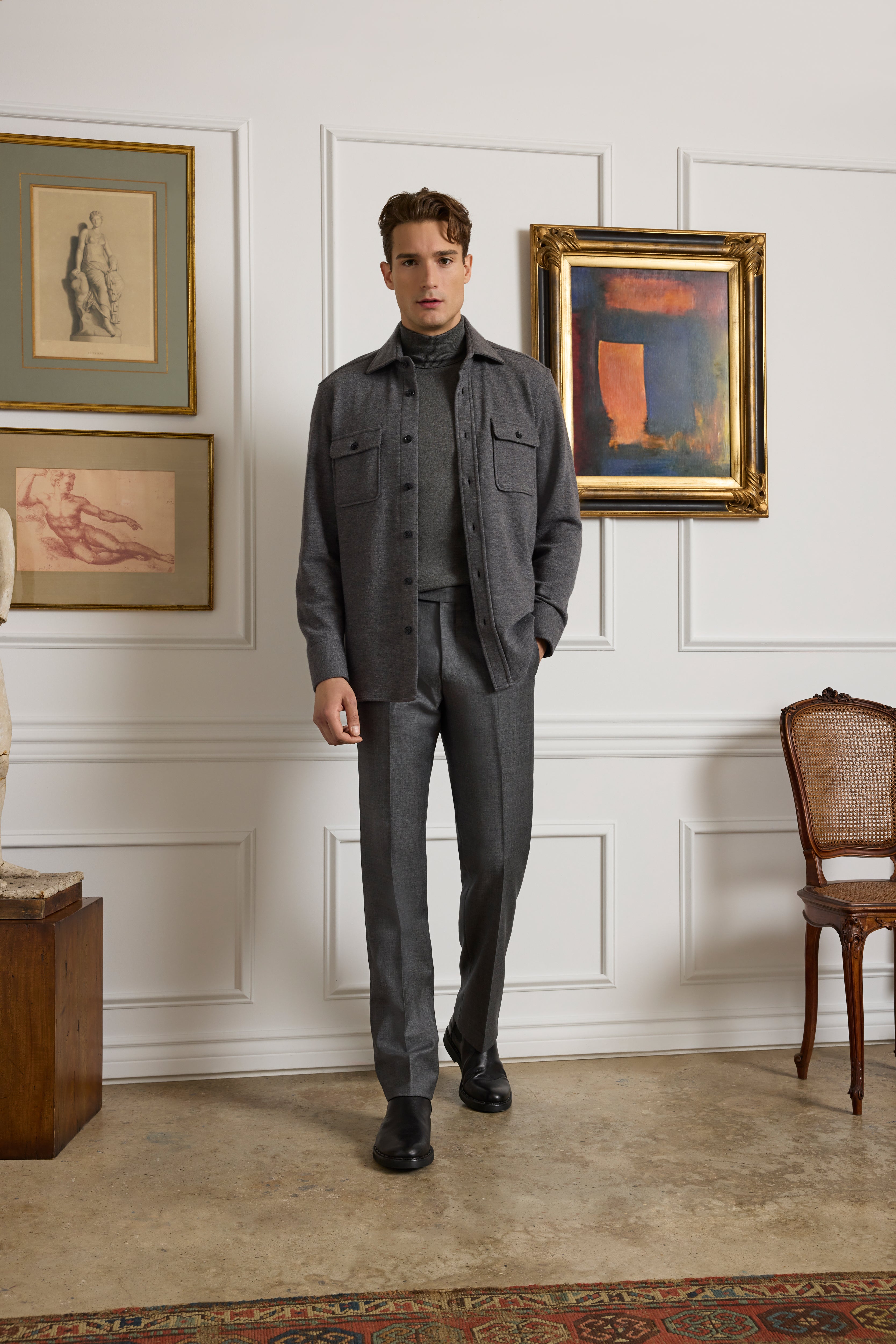 The Devon combines heritage and modern design. With a high-rise silhouette and Zanella’s signature stretch waistband, it offers a comfortable, full fit for all-day wear. Made from classic sharkskin fabric gives the trousers a subtle two-tone appearance with a soft and mid-weight feel.
