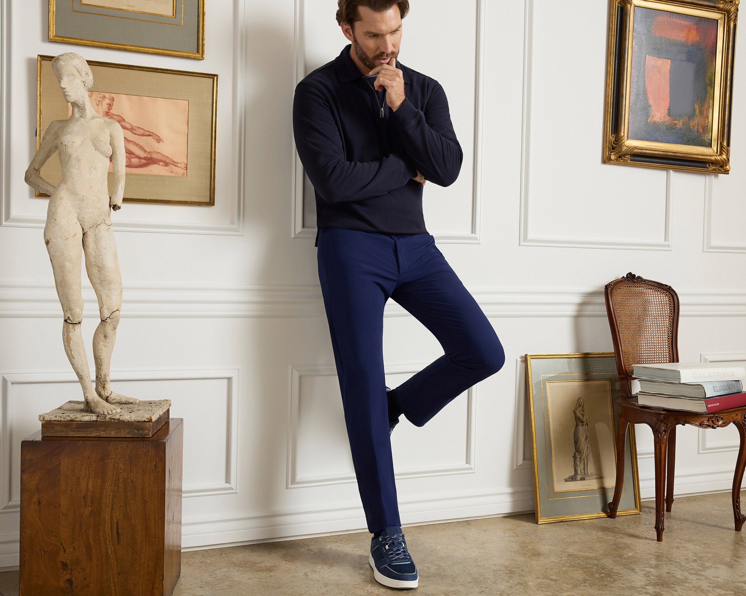 The Noah is contemporary. A comfortable rise, tapered leg and our signature stretch waistband combines with superior tailoring, creating a sophisticated style for the modern man. With a lightweight Italian performance fabric, the Noah Active Trouser features an engineered 4-way stretch fabrication unlike any other. It’s breathable, retains its shape and is machine washable. Only made in Italy.