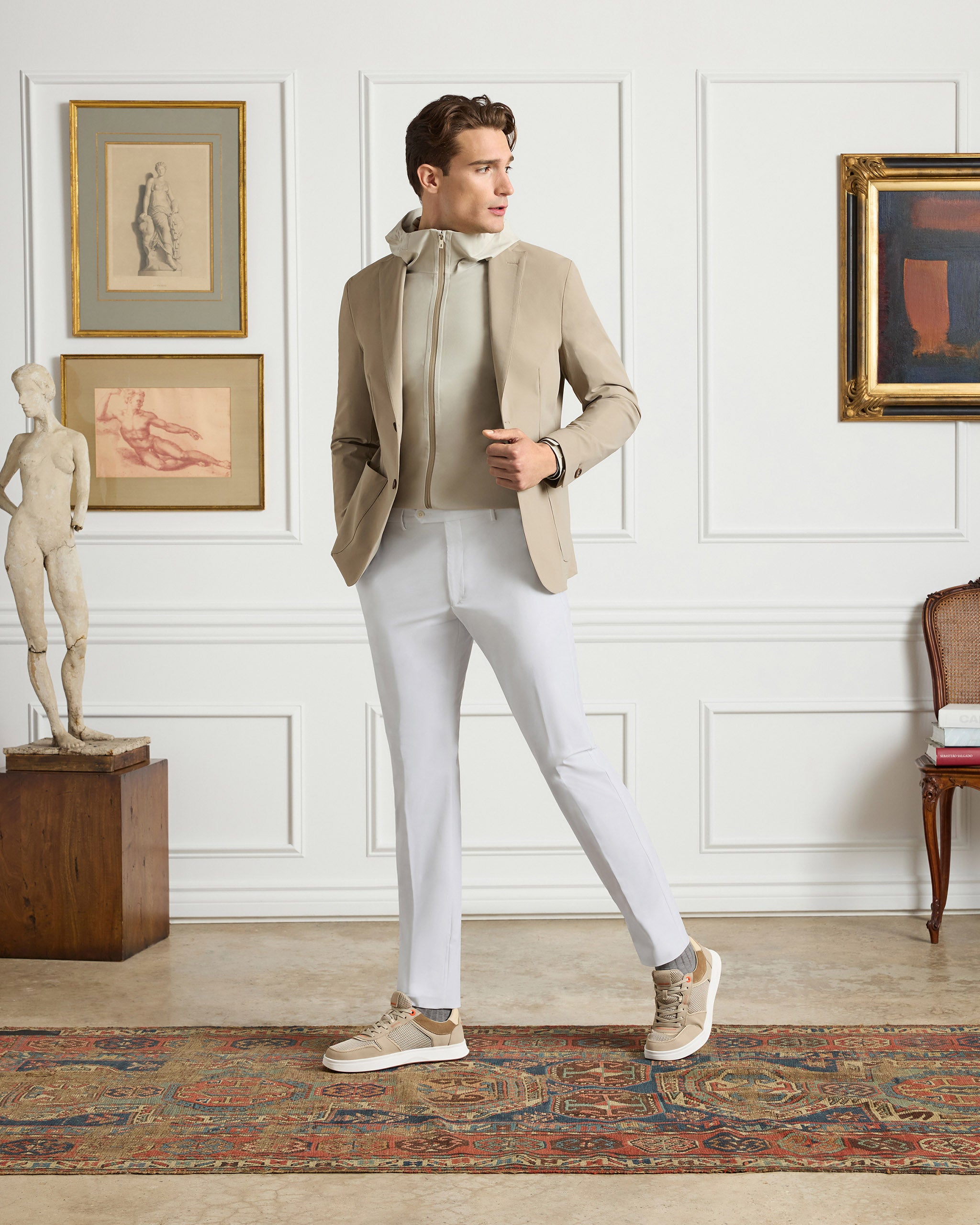 The Noah is contemporary. A comfortable rise, tapered leg and our signature stretch waistband combines with superior tailoring, creating a sophisticated style for the modern man. With a lightweight Italian performance fabric, the Noah Active Trouser features an engineered 4-way stretch fabrication unlike any other. It’s breathable, retains its shape and is machine washable. Only made in Italy.