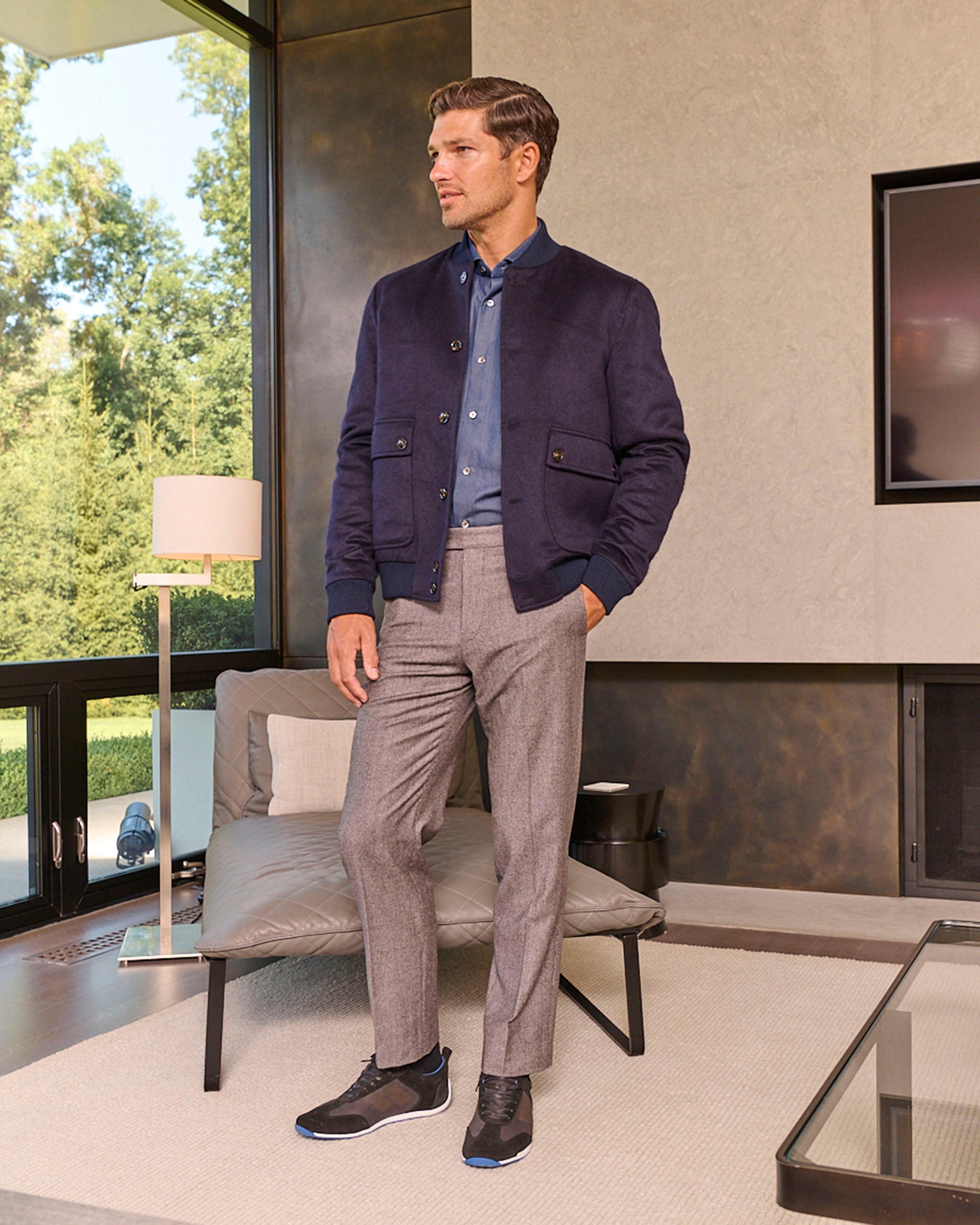 The Parker is contemporary, offers a slightly tapered leg with a medium-rise for a modern fit. Designed for natural movement and comfort, it features technical details like our signature stretch waistband and a 3-button closure for a custom fit. The classic sharkskin fabric gives the trousers a subtle two-tone appearance with a soft, mid-weight feel and wrinkle-resistant features.