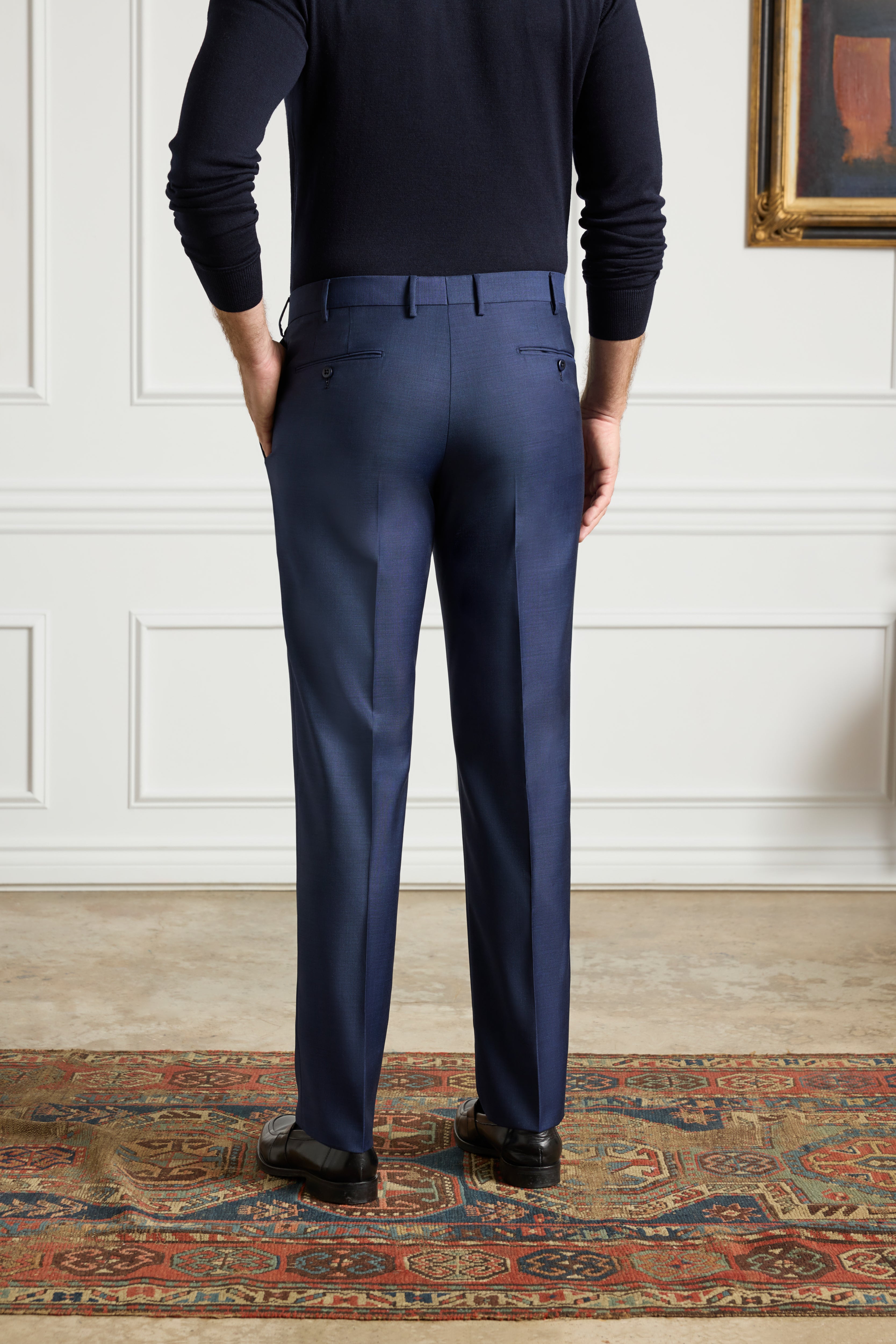 The Parker is contemporary, offers a slightly tapered leg with a medium-rise for a modern fit. Designed for natural movement and comfort, it features technical details like our signature stretch waistband and a 3-button closure for a custom fit. The classic sharkskin fabric gives the trousers a subtle two-tone appearance with a soft and mid-weight feel.