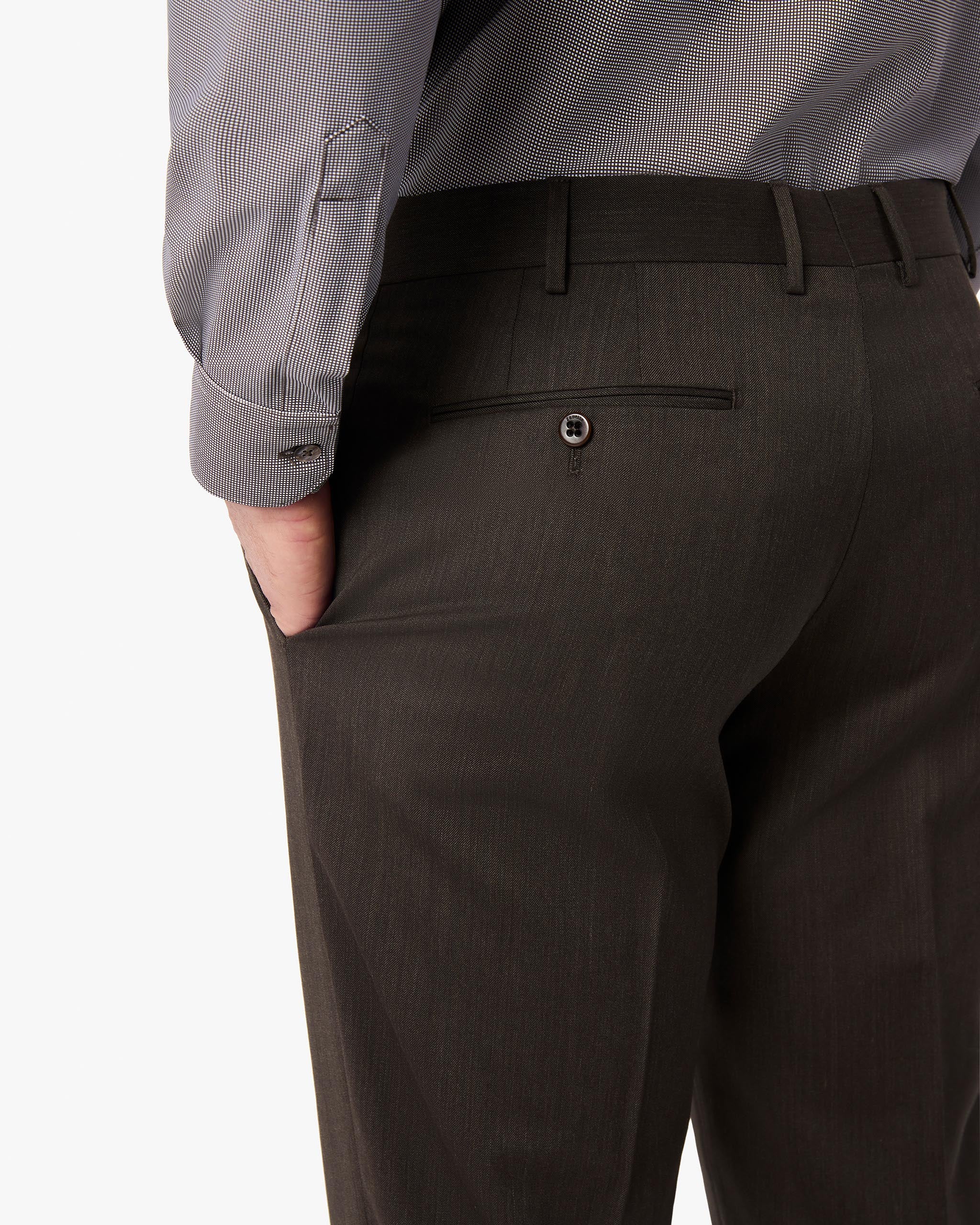 The Parker is contemporary, offers a slightly tapered leg with a medium-rise for a modern fit. Designed for natural movement and comfort, it features technical details like our signature stretch waistband and a 3-button closure for a custom fit.