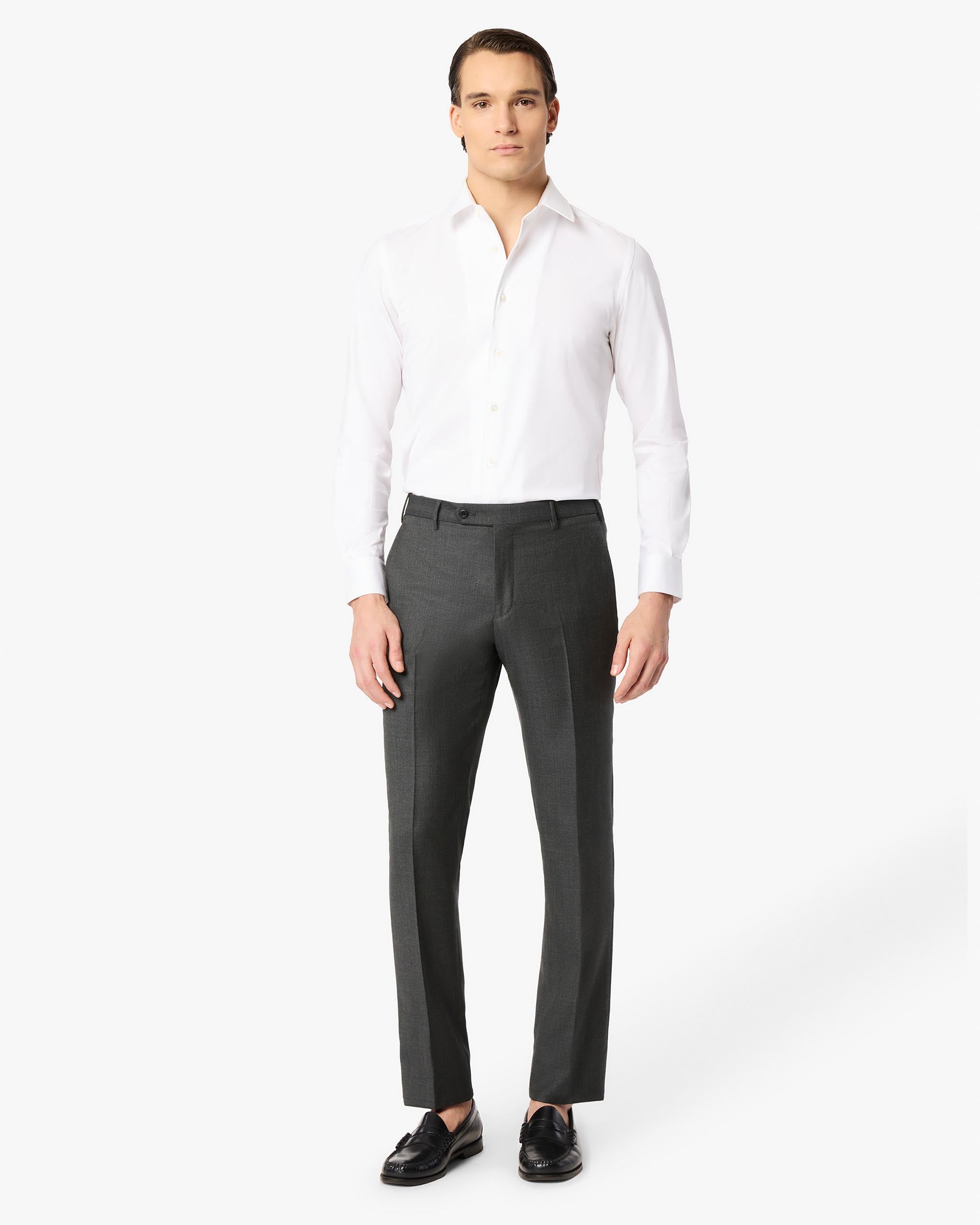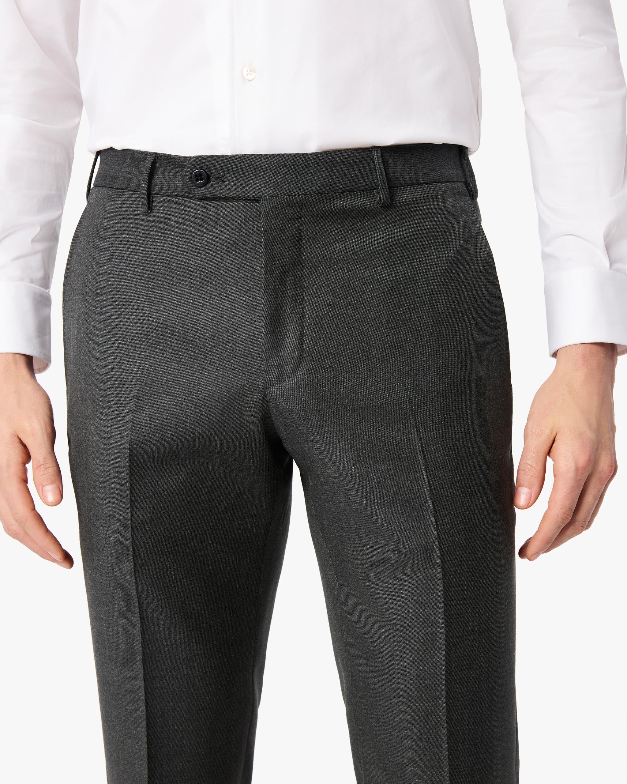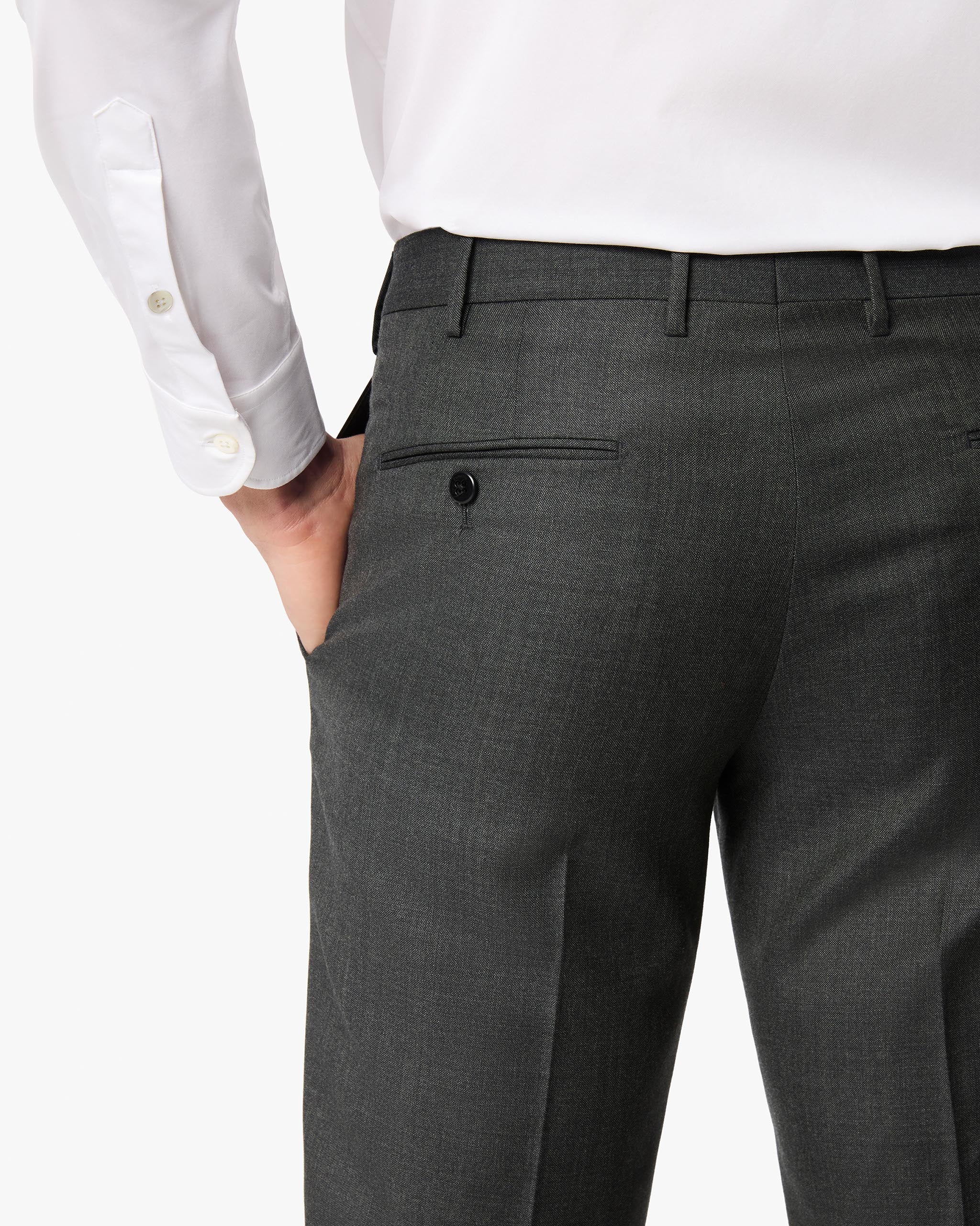 The Parker is contemporary, offers a slightly tapered leg with a medium-rise for a modern fit. Designed for natural movement and comfort, it features technical details like our signature stretch waistband and a 3-button closure for a custom fit. The classic sharkskin fabric gives the trousers a subtle two-tone appearance with a soft, mid-weight feel and wrinkle-resistant features.