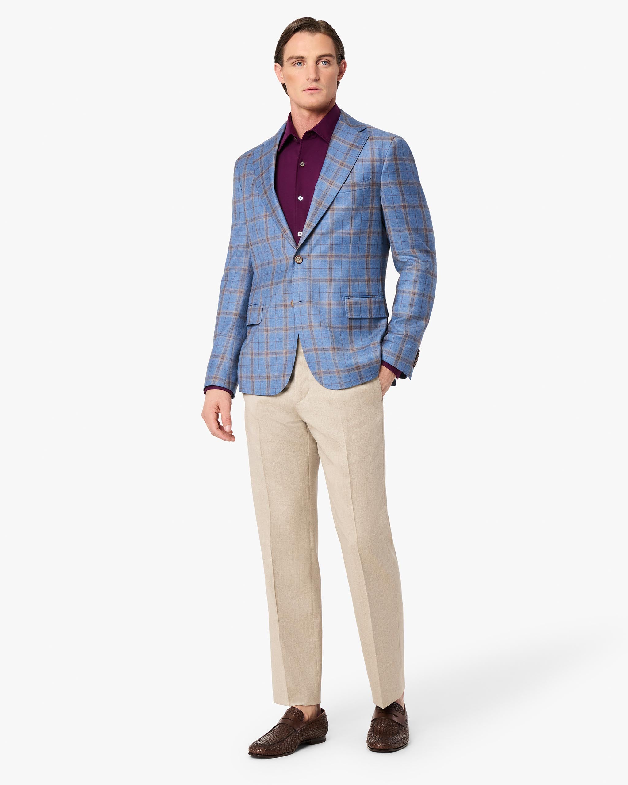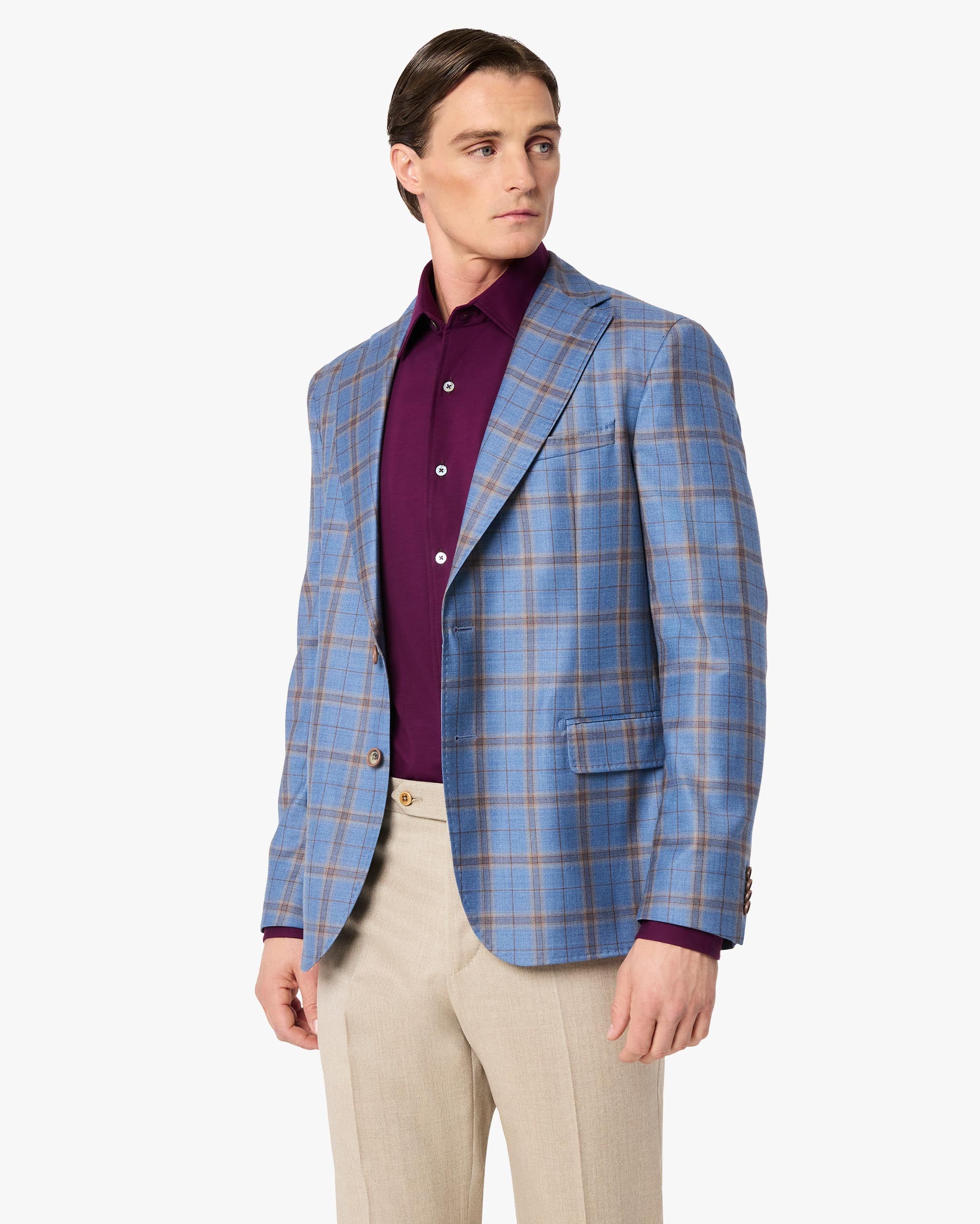 Tailored to perfection, the Treviso exemplifies our attention to detail and our commitment to fine Italian craftsmanship. It boasts a 2-button closure, classic notch collar and a tailored fit.